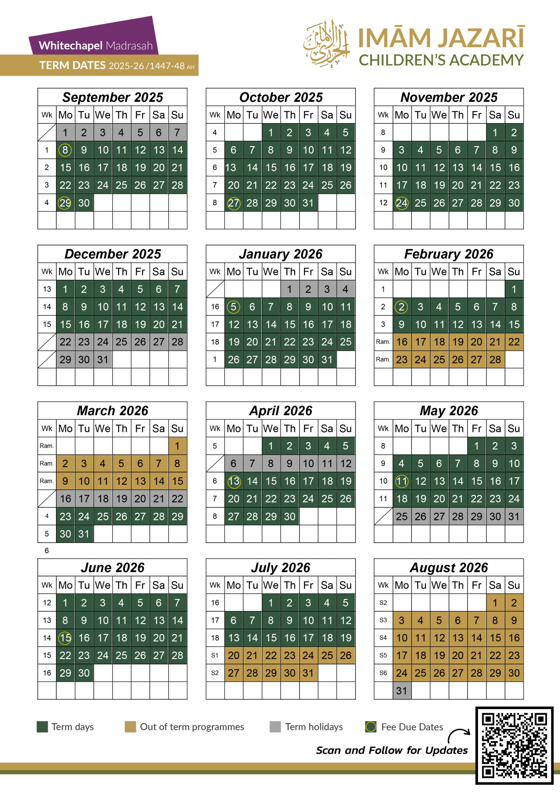 Please see below for details on term dates including fee due dates, holidays, and out of term programmes. Please note there may be changes to term dates which your branch staff will inform parents of. All term dates are mandatory to attend. For updates you can follow our Children’s Academy Channel by clicking here.